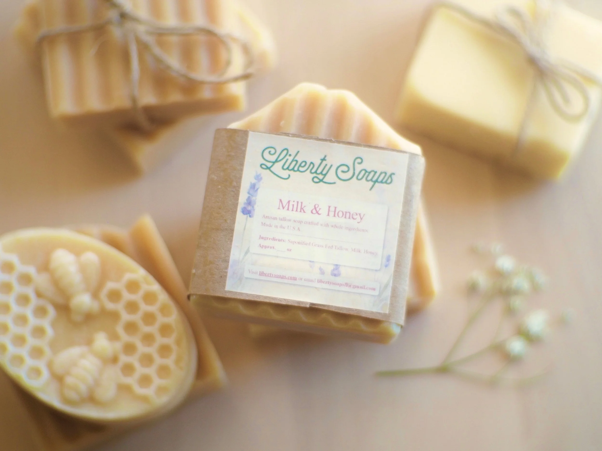 Lye can be dangerous if not properly handled, however, soaps made with the right ratio of fats to lye are safe to use on the skin after they have been properly cured. When water, lye, and fats are combined and emulsified, this triggers a chemical reaction called saponification which turns the mixture into a washing salt and glycerin (hydrating soap) with no harsh lye left in the soap.